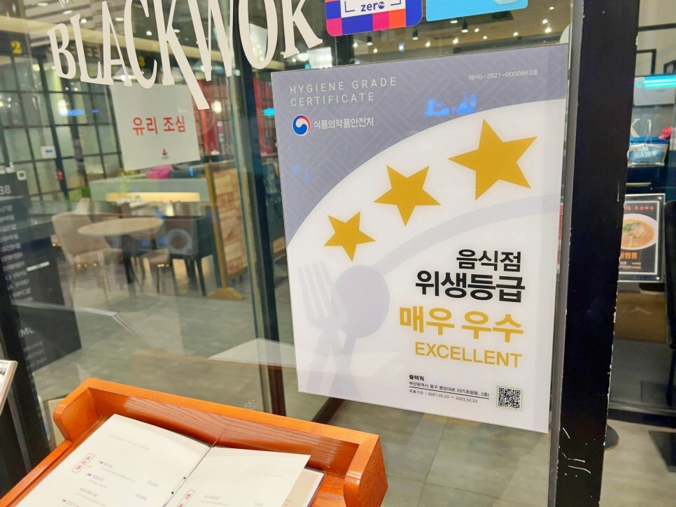 식품의약품안전처가 지정하는 음식점 위생등급 별 3개 매우 우수 매장입니다. 위생이 정말 중요한 부분인데 음식을 먹기 전부터 기분이 좋아지네요.