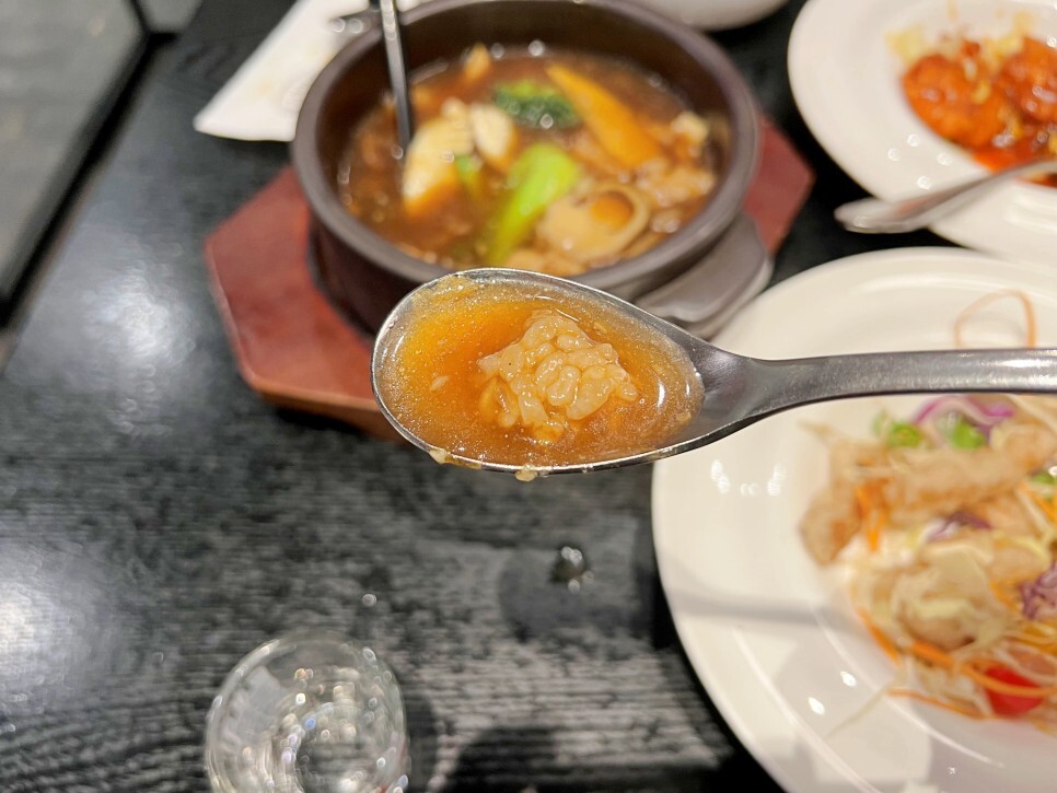 뜨끈한 누룽지탕을 맛보니 속이 따뜻해지네요. 깔끔하고 담백한 국물과 구수한 누룽지의 조합이 참 좋습니다.