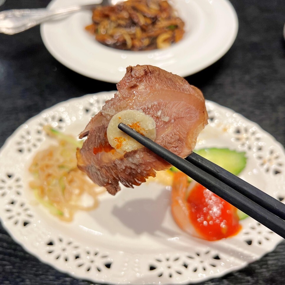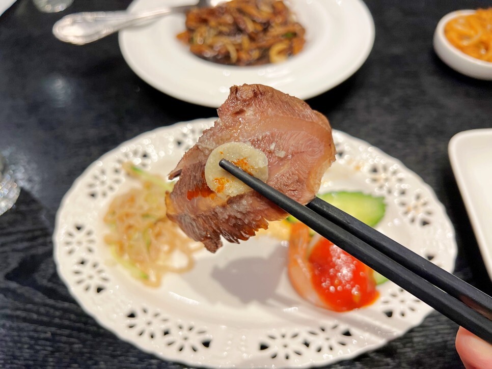 코스 요리 특성상 양은 조금씩 제공되고요. 오래간만에 맛보는 해파리장육냉채가 참 맛있더군요. 삭힌 오리알 피단도 반갑습니다.