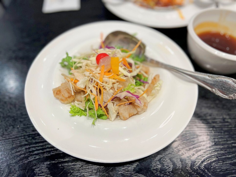 이어서 중국집 하면 떠오르는 탕수육이 나왔습니다. 소스가 따로 나와서 찍먹, 부먹 타령을 할 필요가 없습니다.