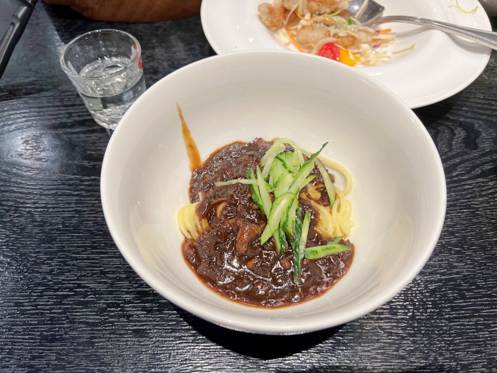 면 요리로 짜장면을 먼저 맛봅니다. 오래간만에 맛보는 짜장면은 참 반갑네요. 기름기가 과하지 않은 담백한 느낌의 짜장면이었어요.