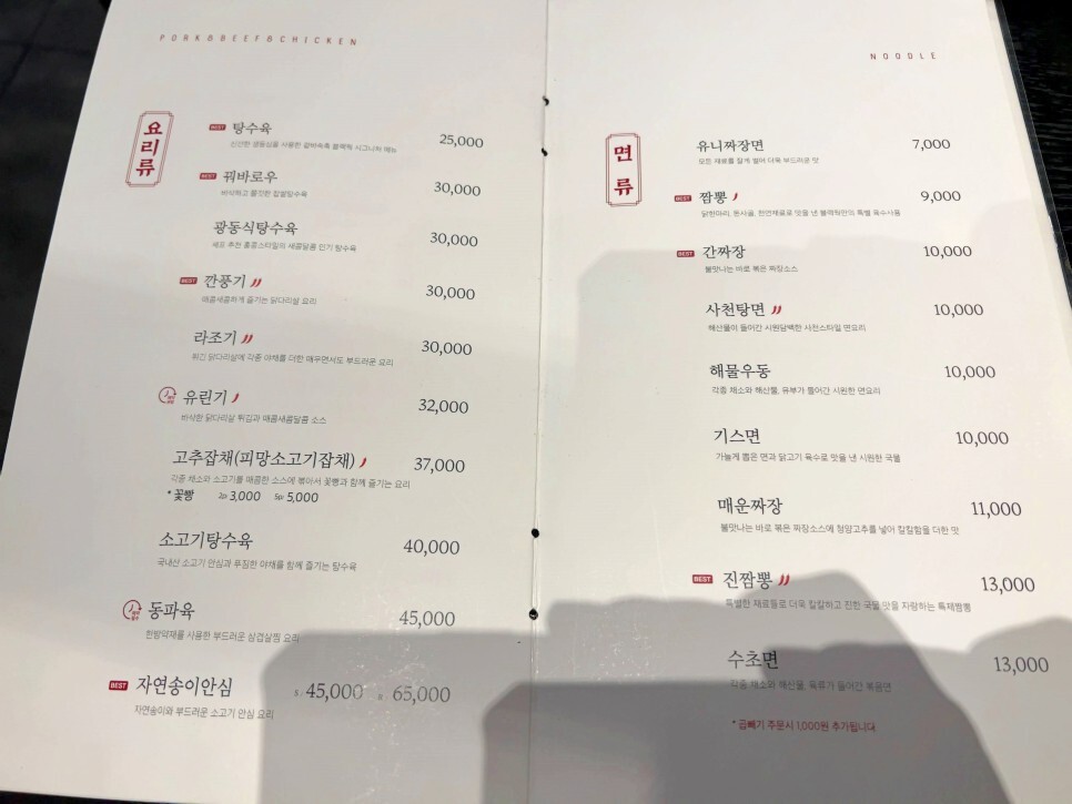 그리고 1인당 5만 원, 8만 원짜리 코스가 있고 면, 요리, 식사류 등 다양한 메뉴가 준비되어 있습니다. 블랙커피라는 카페도 같이 운영하기에 식사 후 카페를 이용하면 10% 할인을 받을 수 있네요.