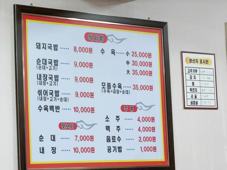 저는 메뉴도 안 보고 돼지국밥을 주문했는데 메뉴판을 한번 찍어보았습니다. 순대국밥을 먹을 걸 그랬나요? 이 집의 모든 국밥은 밥이 따로 나오는 따로 국밥입니다. 저녁에는 순대나 수육 놓고 소주 한잔하는 손님도 꽤 많은 곳입니다.