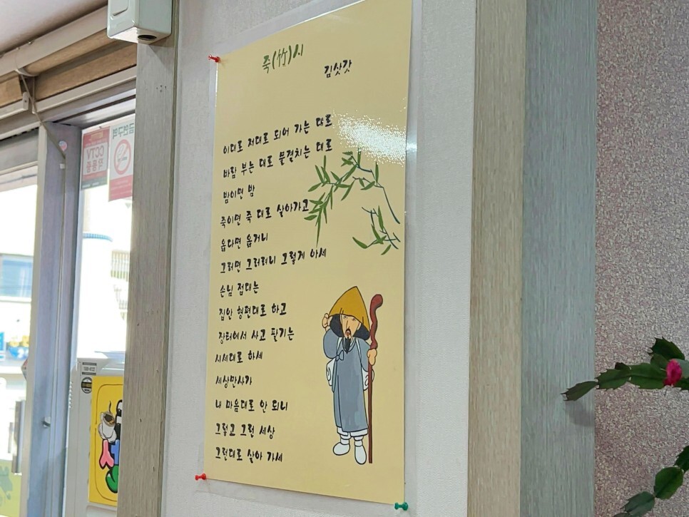 방랑 시인 김삿갓의 죽시도 걸려 있습니다. 음식을 기다리며 한번 읽어보았습니다.