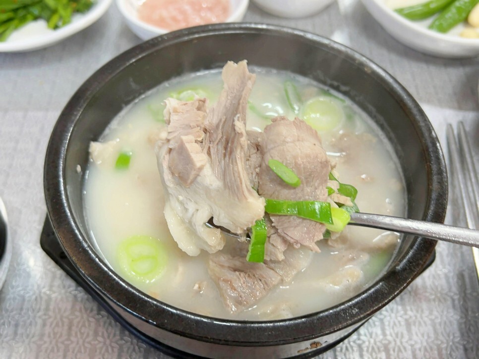 팔팔 끓는 돼지국밥이 나왔습니다. 취향에 따라 다르겠지만 저는 팔팔 끓는 국밥이 좋더군요. 이집 국밥이 그래요. 팔팔 끓습니다.