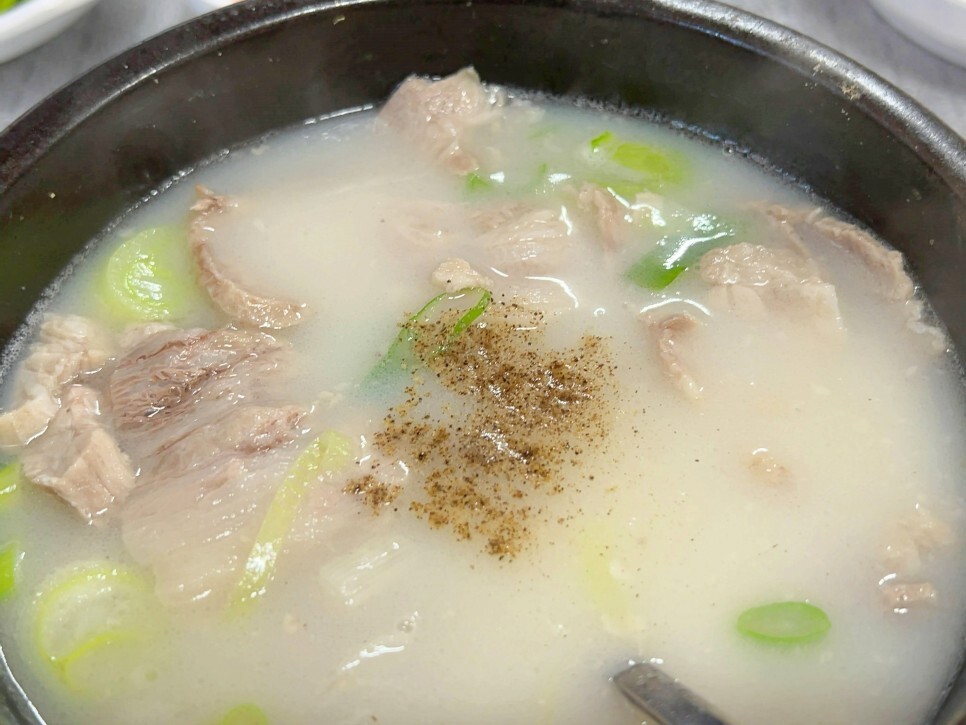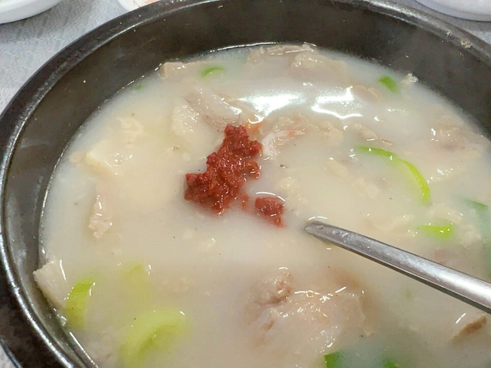 후추 마니아라 의식처럼 후추도 톡톡 넣어주고요. 이 국물은 돼지국밥 초심자, 마니아 둘 다 만족할 만한 국물입니다. 상당히 깔끔하고 담백하면서 깊어요. 오래간만에 깊은 사골 진국을 맛봅니다.