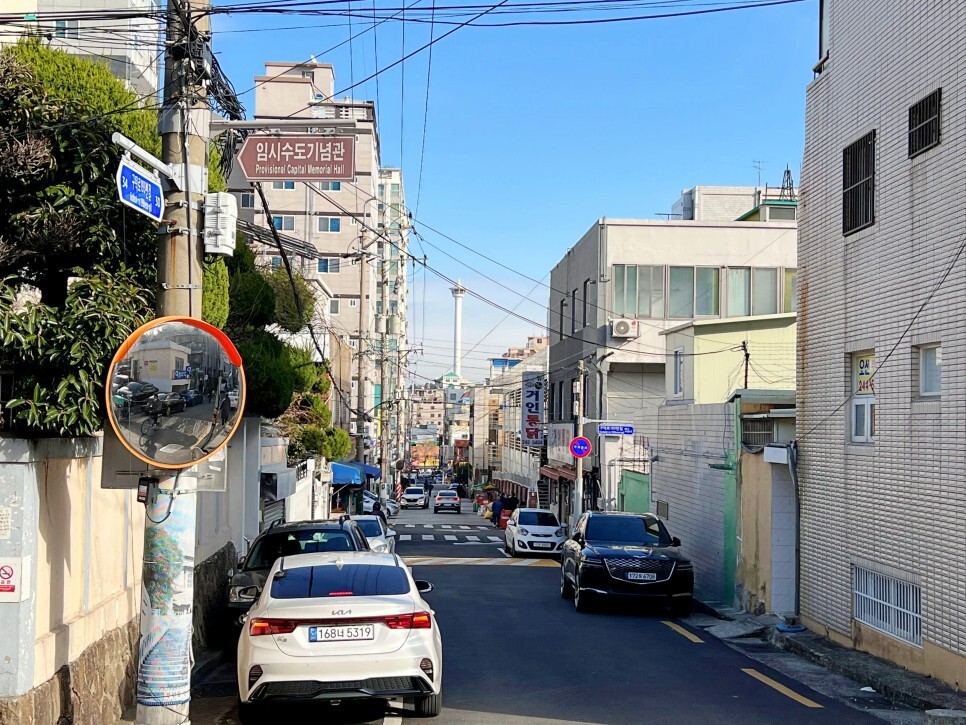든든하게 배를 채우고 나오면 저 멀리 용두산공원의 다이아몬드 타워가 반깁니다. 가까운 이정표에 임시수도기념관이 눈에 들어오네요. 소화도 시킬 겸 기념관 구경을 하는 것도 괜찮은 선택이 되겠어요.
