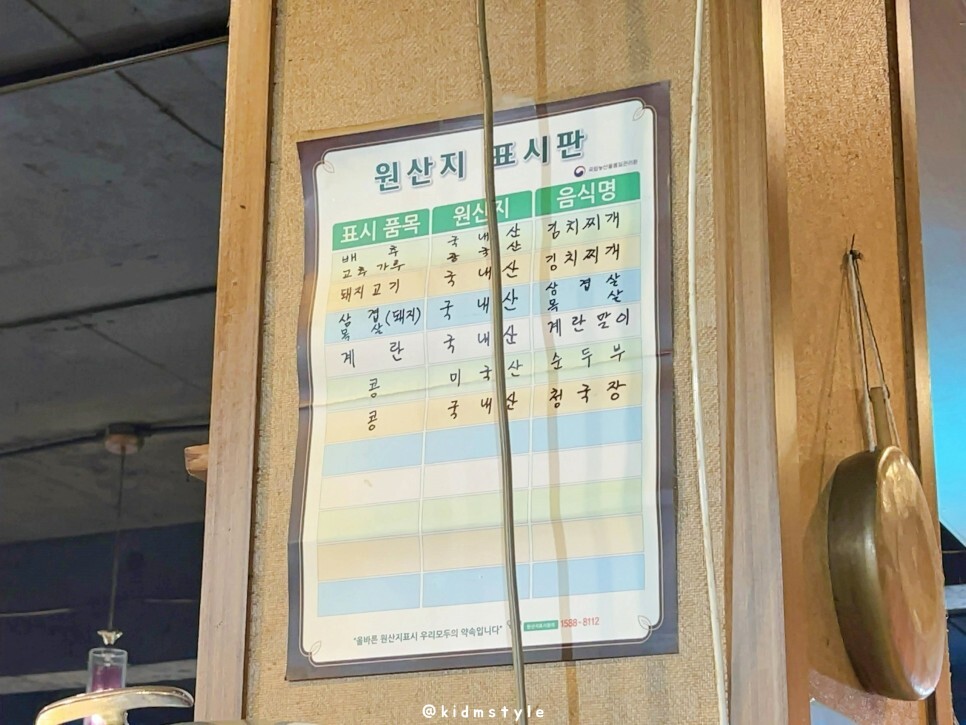 원산지 표시판 참고