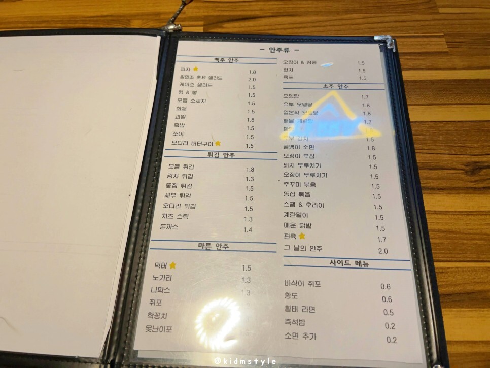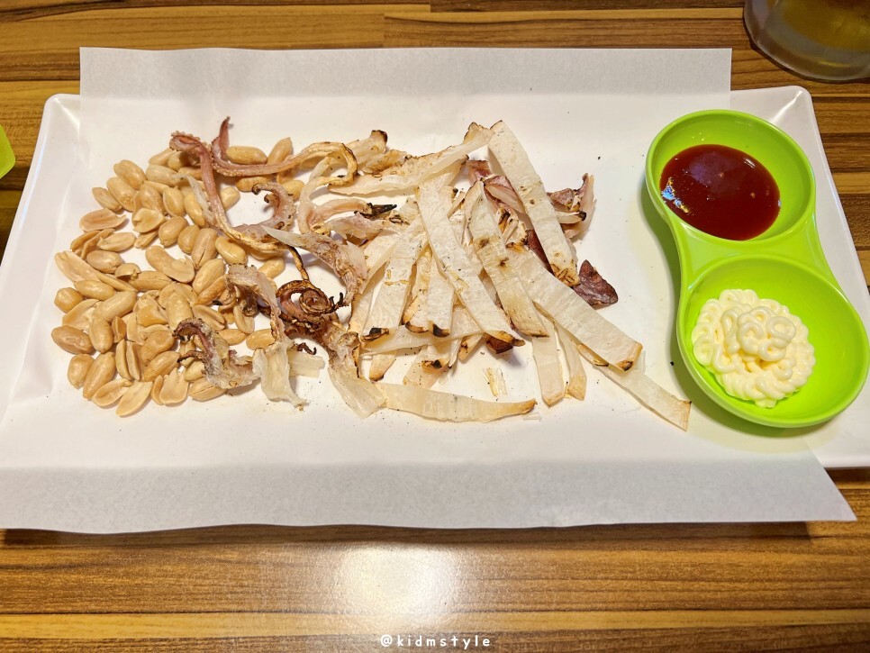 안주도 꽤 많은데 맥주, 소주 마시기에 참 괜찮다. 3차로 방문해서 배가 이미 불렀기에 가볍게 한치를 시켜본다.