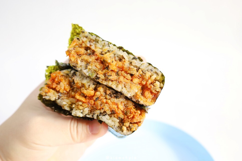크기가 큰데 내용물이 알차다. 밥이 흰쌀밥이 아니고 주먹밥처럼 되어 있어서 다른 삼각김밥과 차별화를 둔 것 같다. 메인 재료가 없는 부분이 자칫 심심해질 수도 있는데 이 제품은 그렇지 않다.