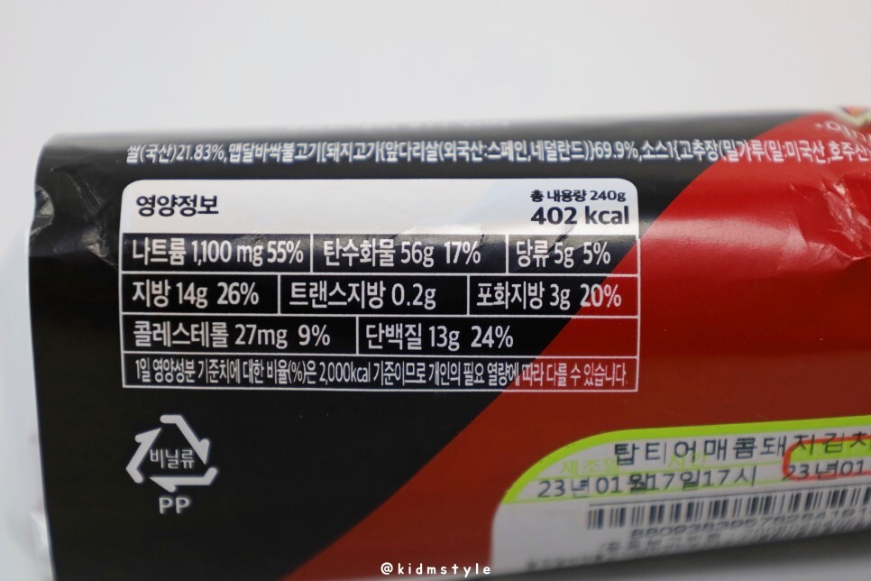 CU T1 탑티어 매콤돼지 김치김밥의 영양성분 정보 참고