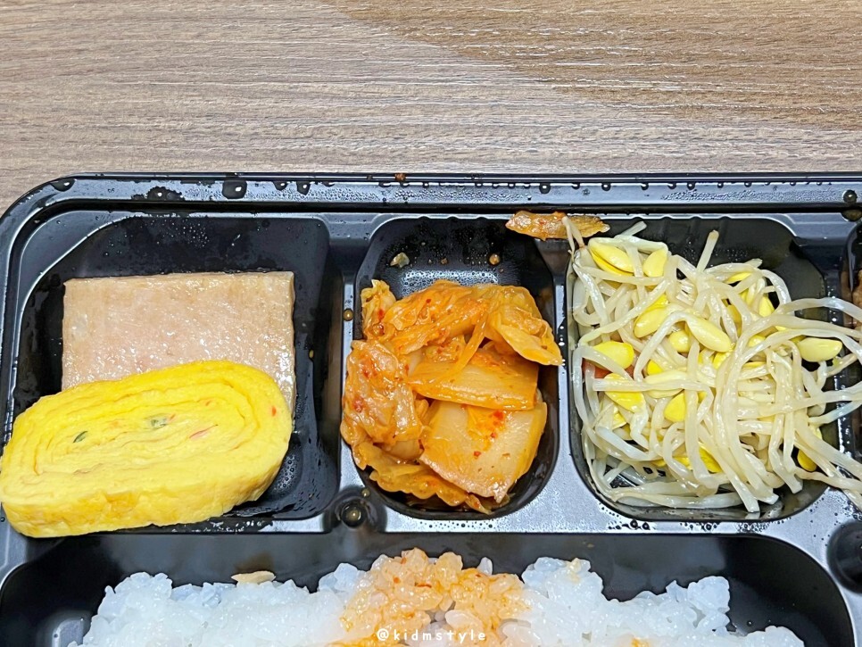 계란말이는 간이 좀 되어있다. 조금 오버쿡해서 촉촉한 식감은 아니며 스팸구이 역시 바짝 구운 느낌이다. 언제 맛봐도 좋은 반찬이다.