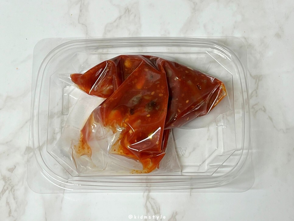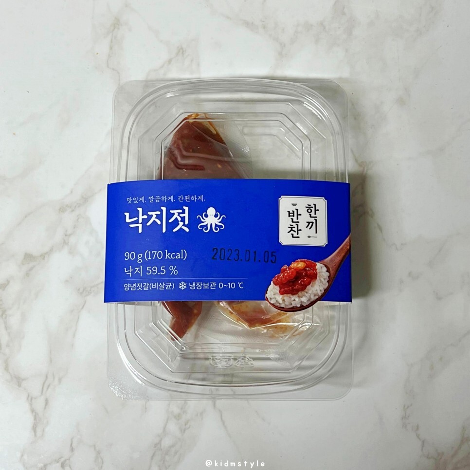 반찬한끼라는 브랜드인데 낙지젓, 명란젓, 오징어젓 등 3가지 종류가 출시, 많은 인기를 얻고 있다. 본 제품의 가격은 3,600원이다.