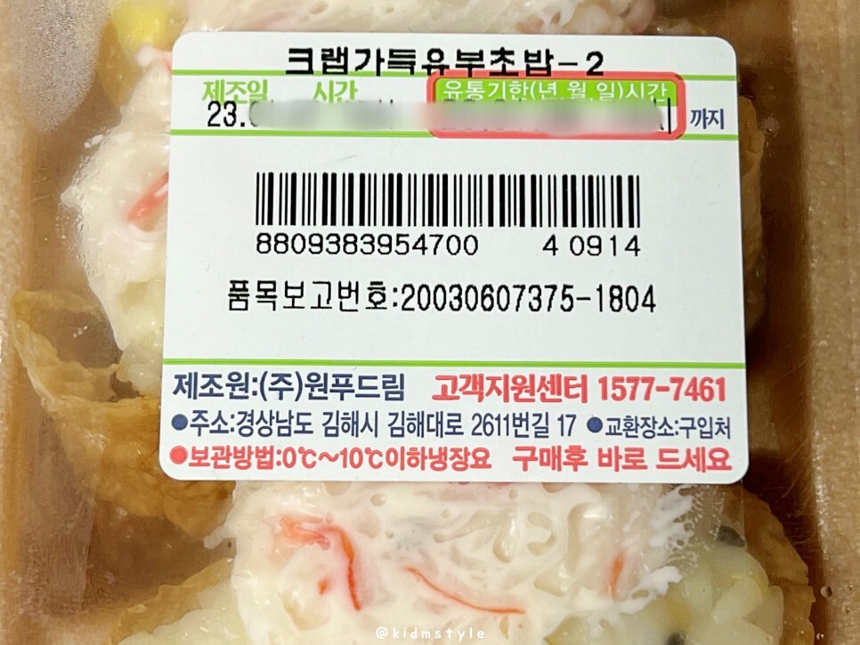 CU 크랩가득 유부초밥 영양성분 정보