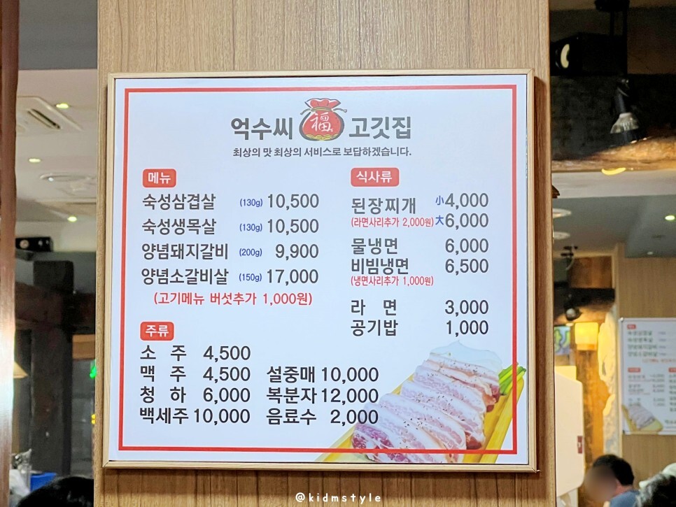 하단오거리 아트몰링 건물 맞은편 코너에 눈에 띄는 억수씨고깃집이 오늘 가볼 곳이다. 예전에는 복자씨고깃집이라는 이름으로 영업하였는데 억수씨로 상호만 바뀌었다.