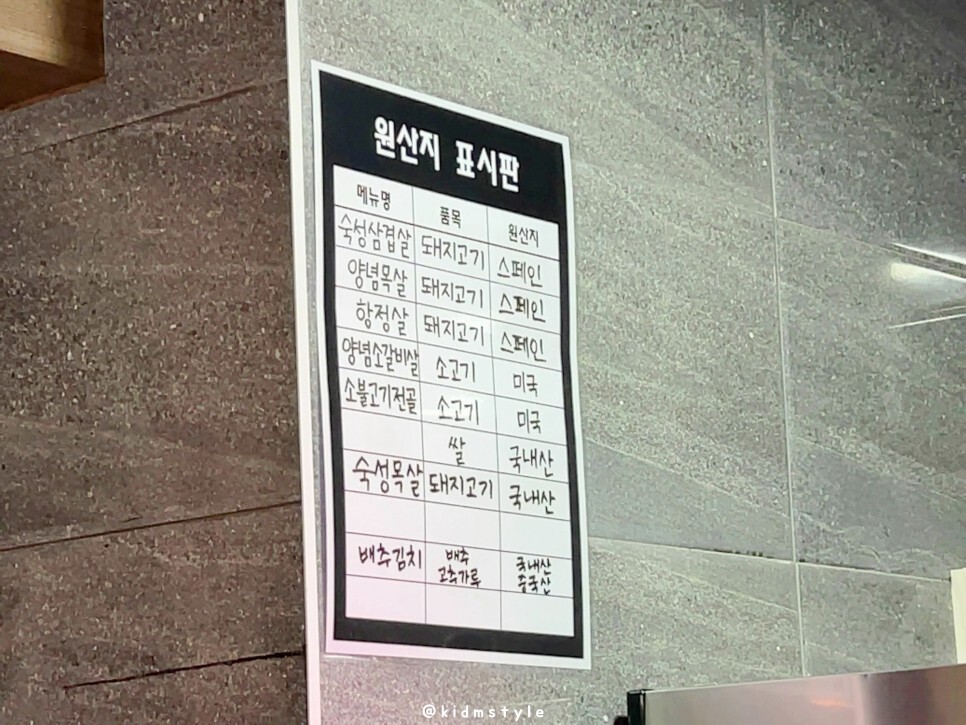 메뉴판을 찍어보았다. 숙성 삼겹살 2인분, 숙성 생목살 1인분을 주문해 본다.