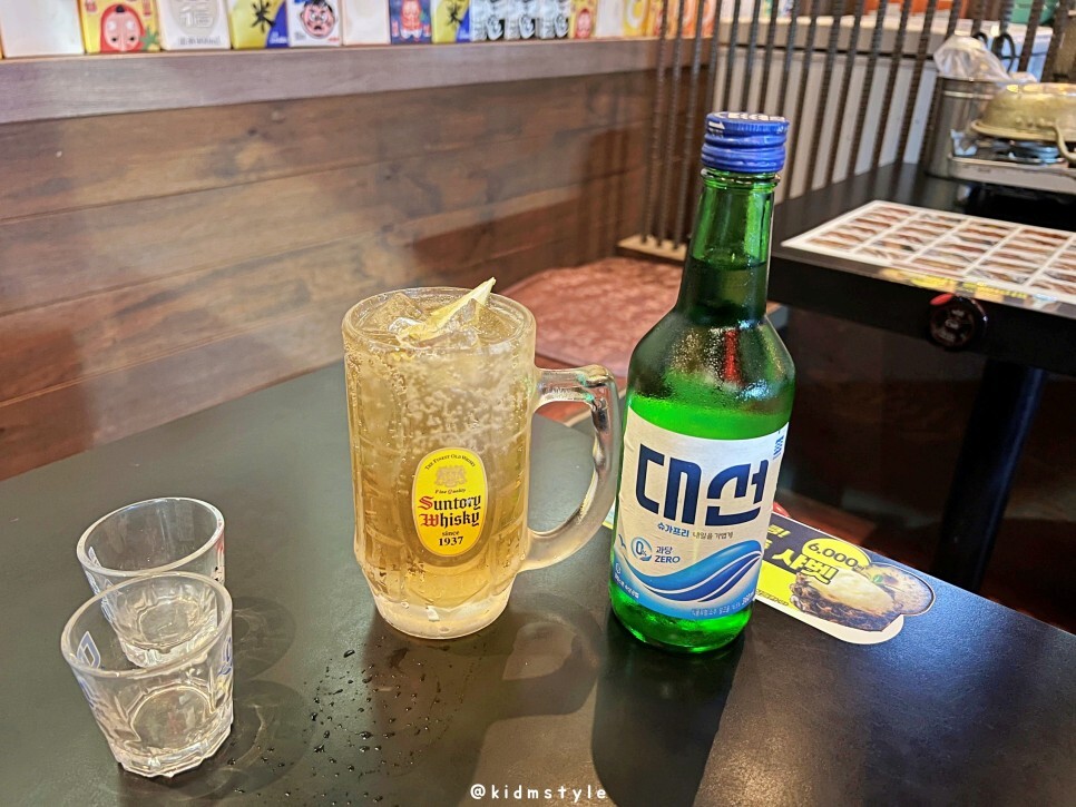 사이드 메뉴로 여러 가지가 있는데 예전에 먹어본 기억을 살려보면 생크림 토스트도 맛있고 가라아게도 괜찮았다. 주류는 소주, 맥주, 하이볼, 그리고 기본적인 사케를 판매한다.