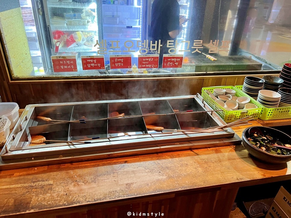 오뎅은 먹고 나서 후불로 계산을 하면 되고 오뎅을 필수로 주문할 필요는 없으며 오뎅국물은 무료이다. 마음껏 퍼먹으면 된다.