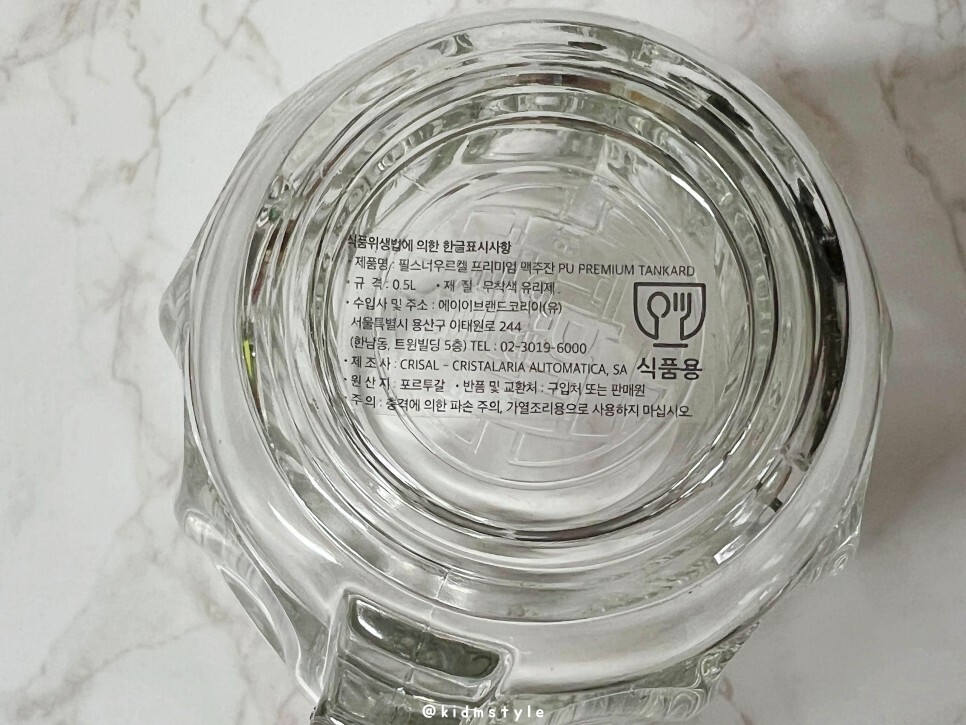 잔 바닥에 한글표시사항이 붙어있는데 특이하게 중국산이 아닌 포르투갈에서 건너온 잔이다.