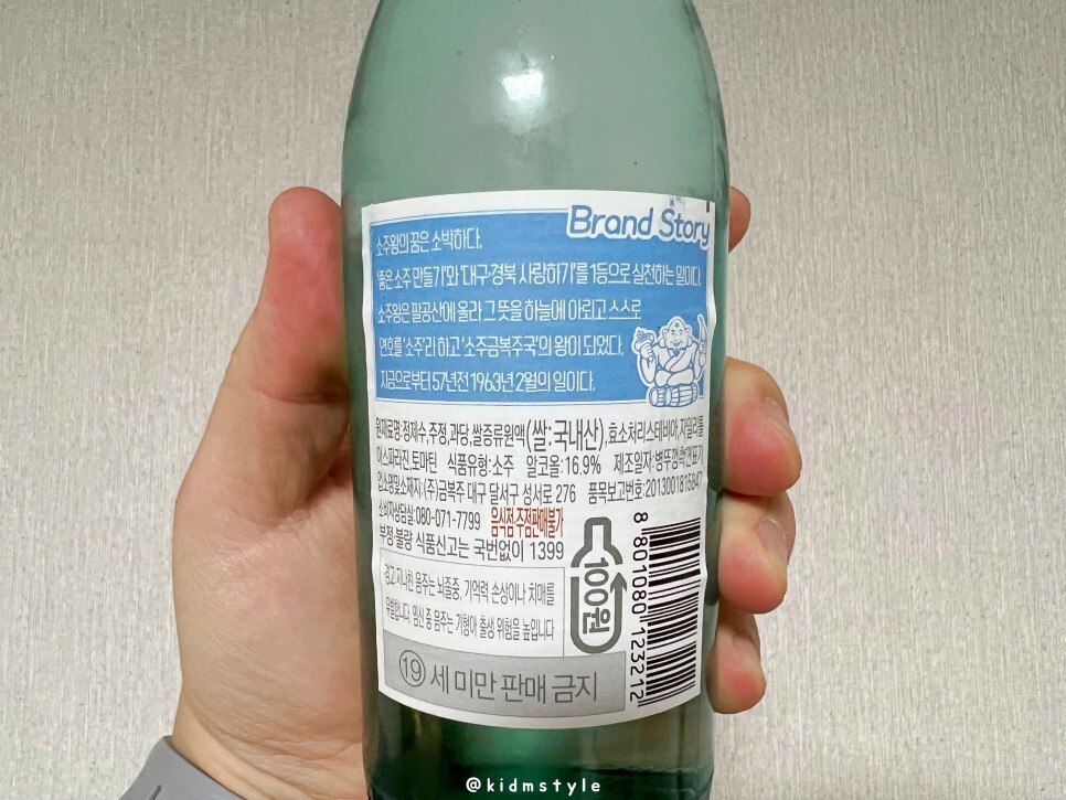 그런데 소주왕 금복주라는 이름으로 다시 나왔다. 우연히 편의점에 갔다가 발견해서 리뷰를 위해 한 병 구입했고 구입한지는 꽤 오래되었는데 계속 술장고에서 보관만 하다가 드디어 한번 맛보기로 했다.