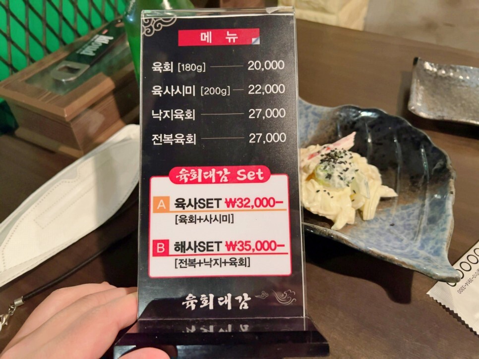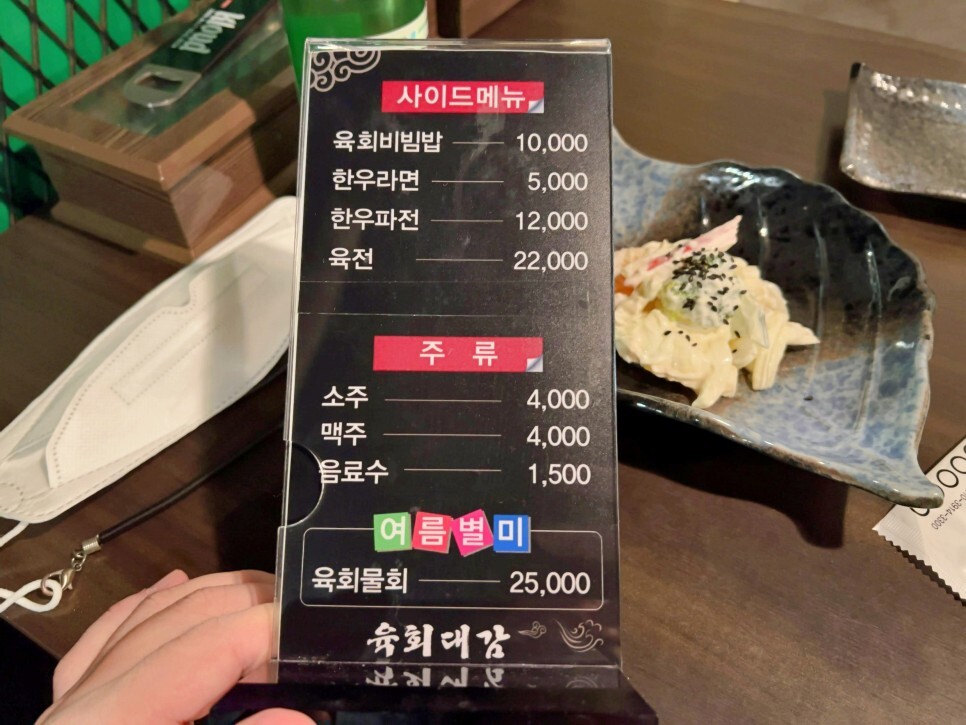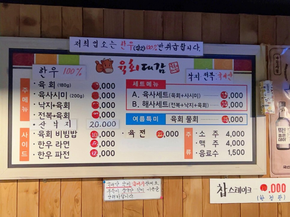 다양한 메뉴가 준비되어 있습니다. 무엇을 맛볼지 고민을 잠깐 해봅니다. 육사시미도 잘하기로 유명하지만 저의 결론은 육회입니다.