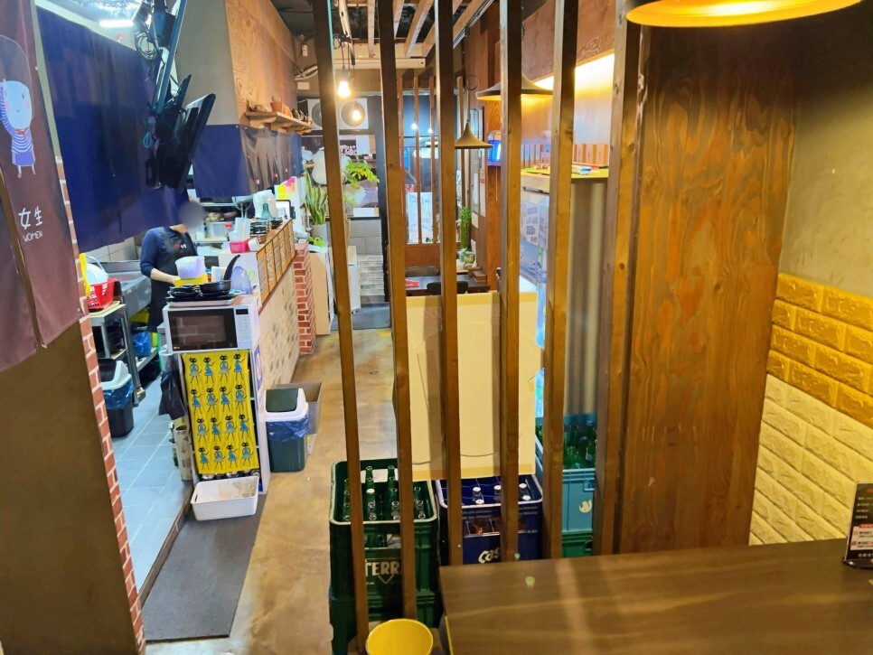손님이 많아서 나중에 나올 때 찍었던 사진인데요. 내부가 긴 공간인데 계단식으로 되어있어요. 저는 위 공간 테이블에 자리를 잡았습니다.