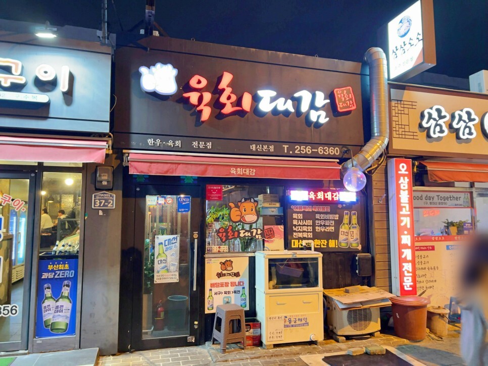 동대신동 삼익아파트 상가 골목에는 다양한 맛집이 많은데요. 오늘 소개할 육회대감의 모습입니다. 숨은 맛집이라고 말씀드렸는데 동네 주민들에게는 뜨거운 사랑을 받고 있는 그런 식당이에요.