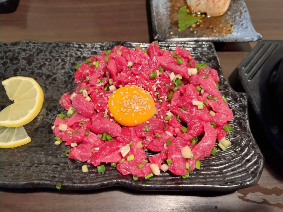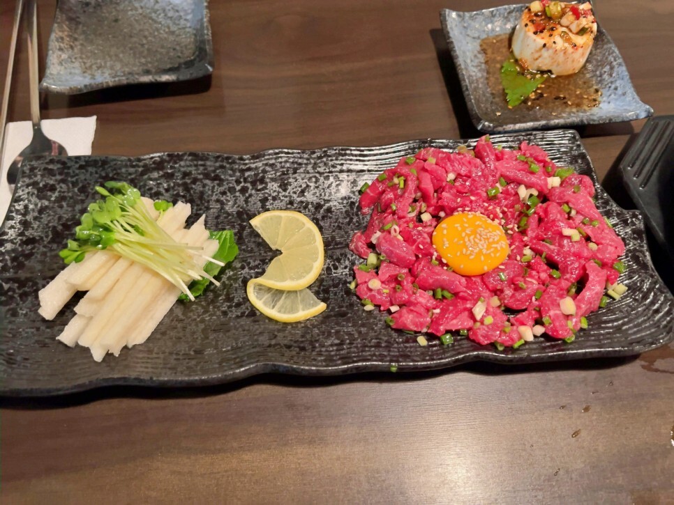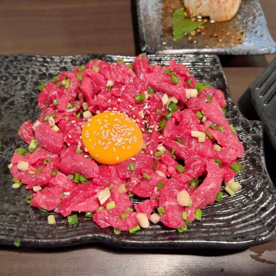 신선한 육회는 다른 수식어가 필요 없는 것 같습니다. 고소함이 퍼지며 즐거운 식감을 제공해 줍니다.