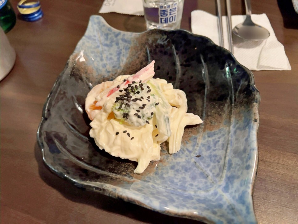 브로콜리와 크래미 맛살이 올라간 곤약 샐러드가 참 반갑네요. 곤약을 정말 좋아해요. 아, 사실 가리는 음식은 없답니다. 그래서 살을 못 빼고 있는 걸까요? 예전에 운동하고 다이어트할 때 참 즐겨먹었던 곤약입니다. 다른 이들은 곤약을 먹는 게 곤욕이었다고들 하는데 저는 곤약 없어서 못 먹어요.