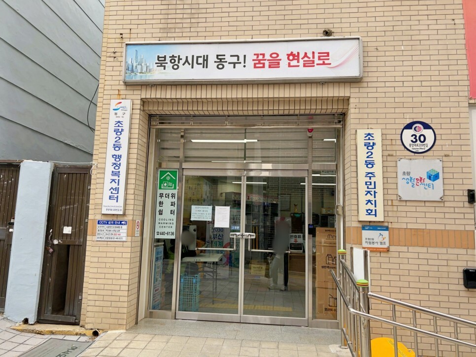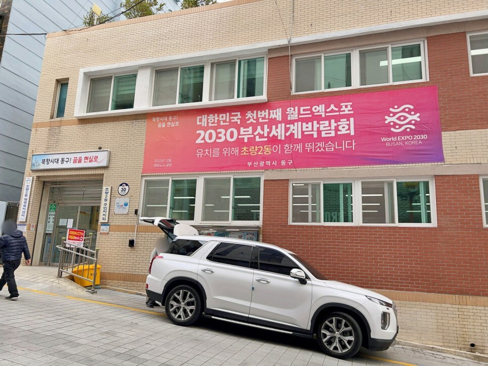 저는 초량 2동 주민이라 시간을 내어 초량 2동 행정복지센터에 방문하였습니다. 마침 장을 볼 게 있어서 주차는 근처 탑마트 초량점에 해두었고요. 부산역 맞은편에 있는 주민센터에요. 근처에 공영주차장도 있으니 주차는 어렵지 않습니다.