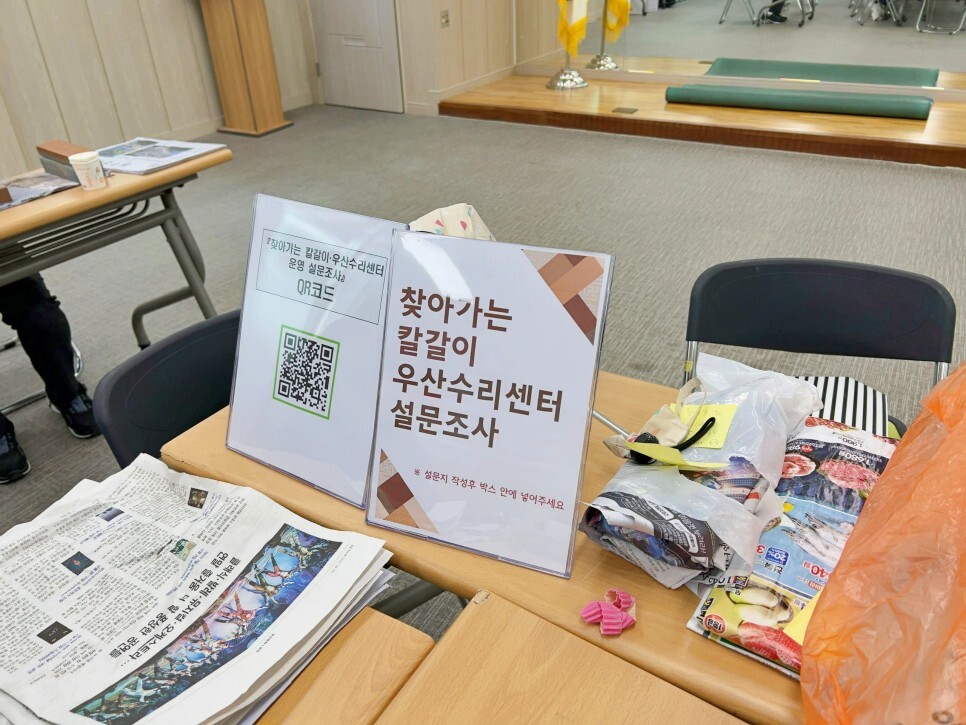 찾아가는 칼갈이, 우산수리센터 설문조사도 진행하는데요. 나중에 칼을 찾을 때 설문지를 작성하여 전달했답니다.