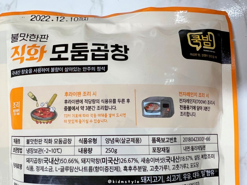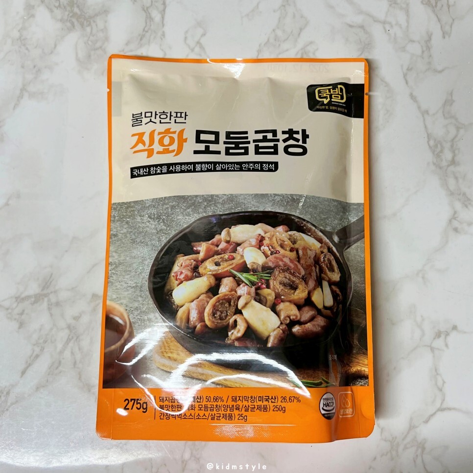 불맛한판 직화 모둠곱창이라는 제품인데 7,980원이라는 저렴한 가격이 눈에 들어왔다. 혼술 안주로 한번 먹어보기로 한다.