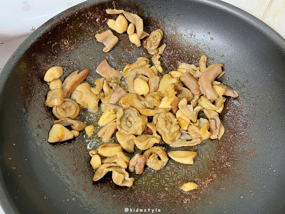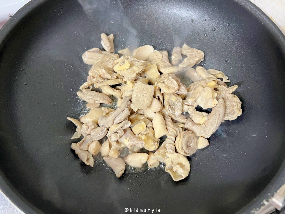 곱창과 간장소스가 들어가 있다. 찍어 먹는 소스인데 같이 볶아 먹기로 한다.