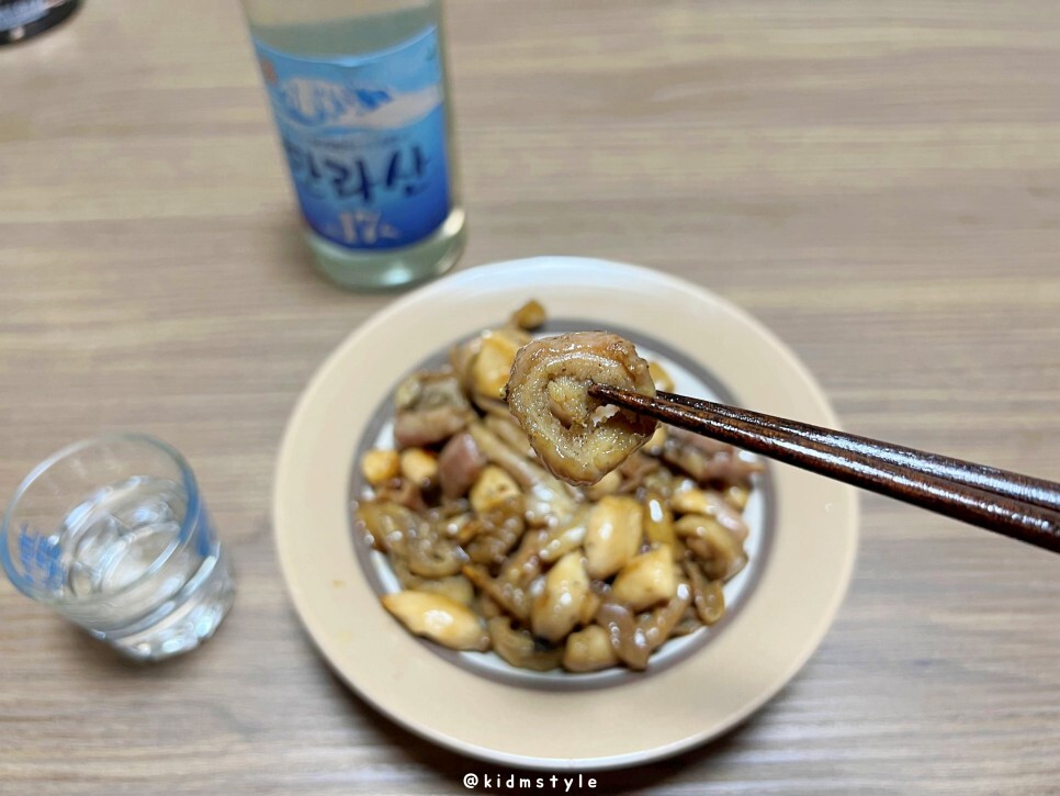 한 점 맛본다. 오? 꽤 맛있다. 쫀득 쫄깃한데 부드럽게 씹힌다. 간도 딱 좋다. 잡내도 없다.