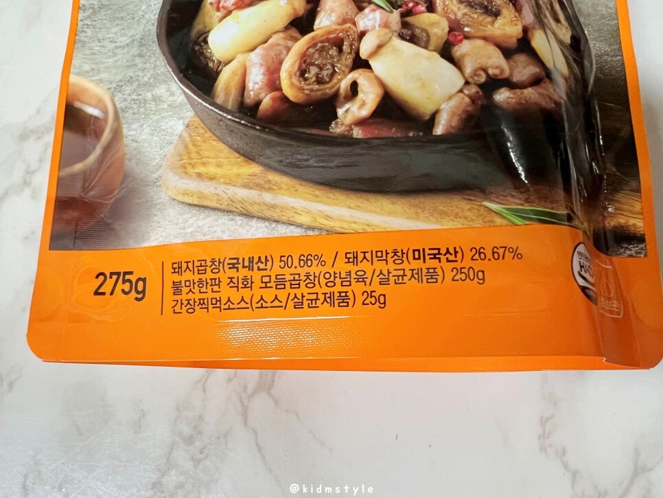275g으로 양이 제법 많은 편이며 돼지곱창, 돼지막창, 모듬곱창 등의 구성이다.