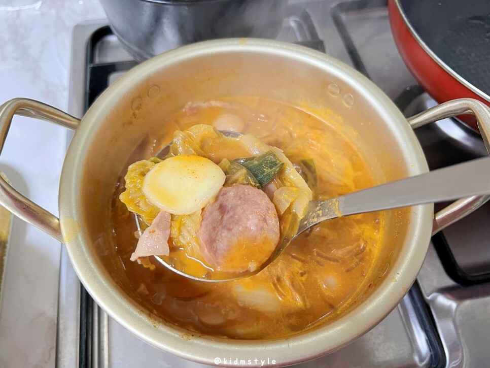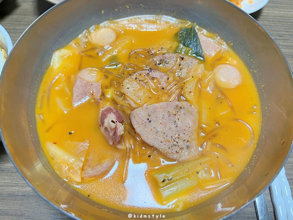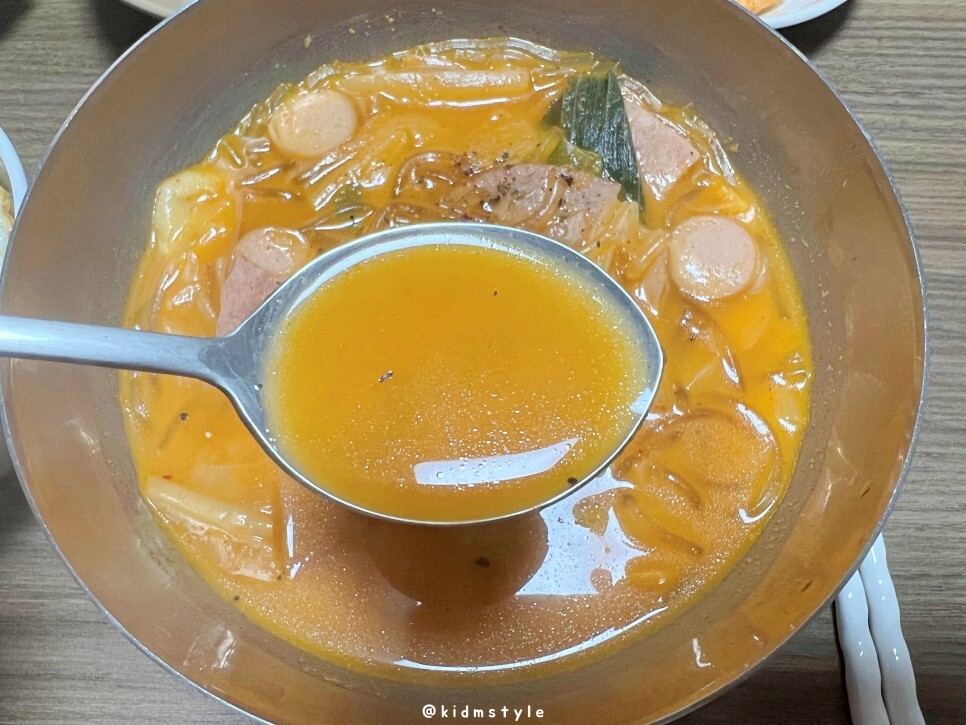 한 숟가락 떠서 맛보니 우리가 생각하는 부대찌개 그 맛이다. 딱 좋다. 짜지도 싱겁지도 않은 딱 적당한 간이다.