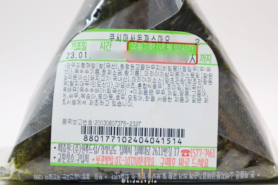 CU 쿠시마사 돈까스마요 삼각김밥 영양성분 정보 참고