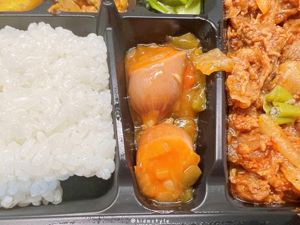 계란말이 역시 오버 쿡인데 폭신한 계란말이 식감은 덜하고 바삭함에 가깝습니다. 짭짤하게 간이 되어 있어서 역시 밥반찬으로 먹으면 좋을 것 같네요.