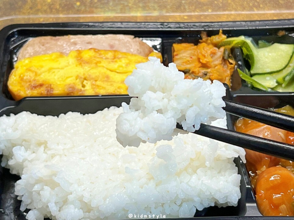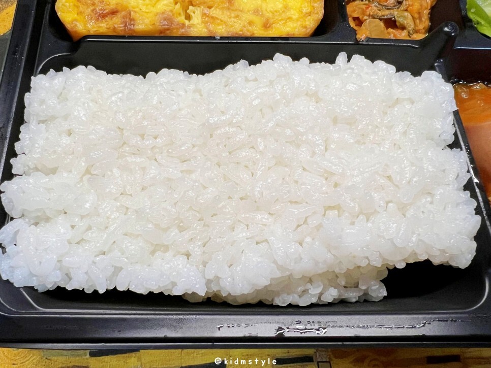 밥을 맛봅니다. 상당히 찰지고 잘 지은 밥입니다. 편의점 도시락을 많이 먹었는데 이때까지 먹은 밥중에서 손가락 안에 드는 찰기입니다. 전라도 곡창지대에서 수확한 맛있는 쌀로 지어서 그런가요?