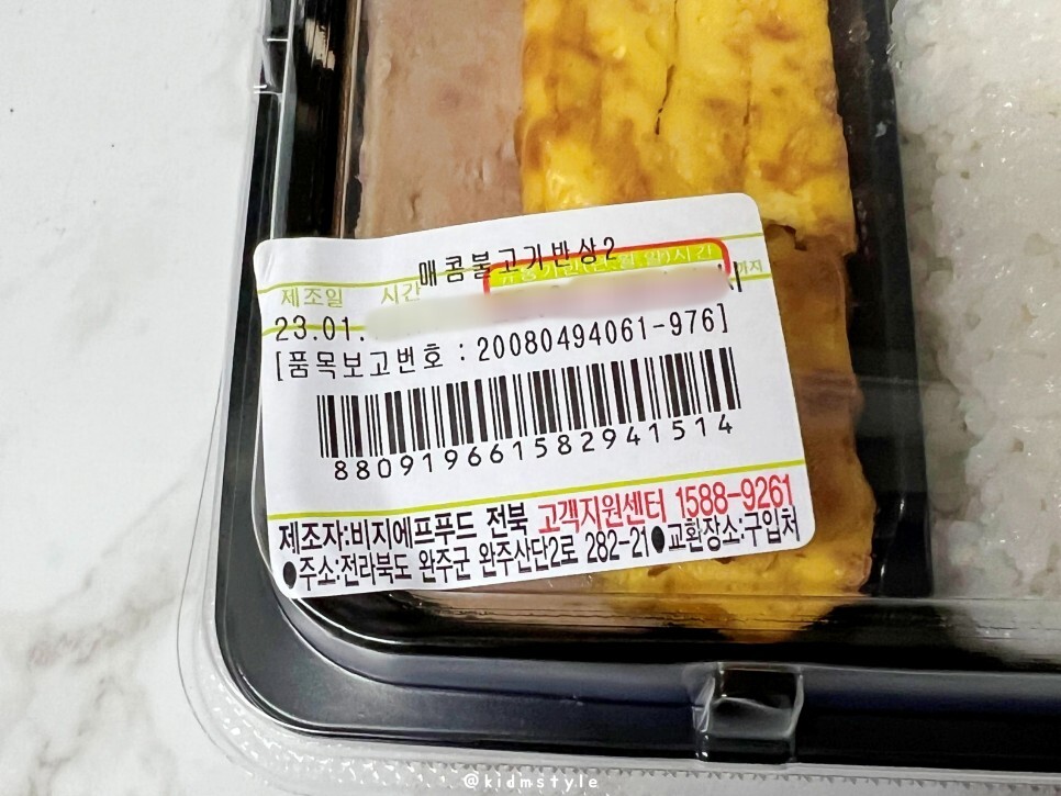 CU 도시락, 주먹밥 등 신선식품을 만드는 여러 업체 중, 이 도시락은 비지에프푸드 전북 공장에서 만들었네요. 전북 하니 전주가 생각납니다. 전주 여행 안 간지 20년 됐는데 전주 가고 싶네요. 제가 전주 여행을 간다고 하면 좋아하실 전주 분 한 분 계십니다.