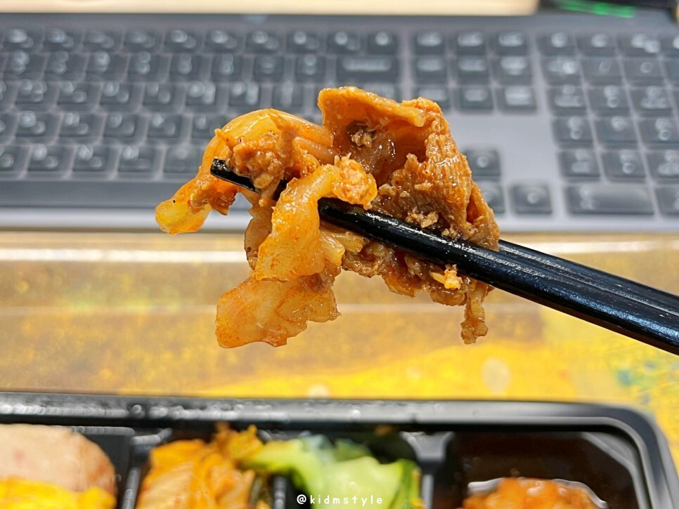 메인메뉴인 고추장 불고기를 맛봅니다. 상품 제목답게 매콤합니다. 처음 입에 넣자마자 단맛이 느껴지는데 먹다 보면 뒤에 매콤함이 따라옵니다. 꽤 맵네요.
