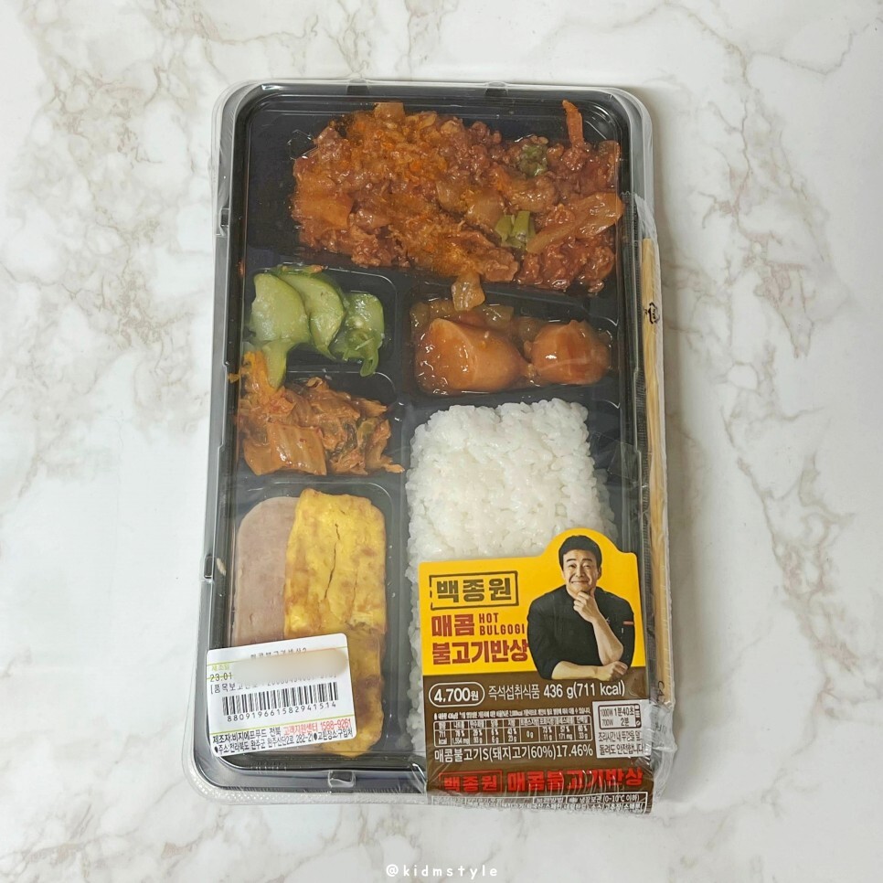 잡설이 길었습니다. CU 백종원 매콤 불고기반상 도시락입니다. 가격은 4,700원이며 CU 편도 중에서 인기가 상당히 많은 제품입니다. CU는 백종원, GS25는 김혜자 도시락 등 각자 콜라보 한 제품이 있습니다.
