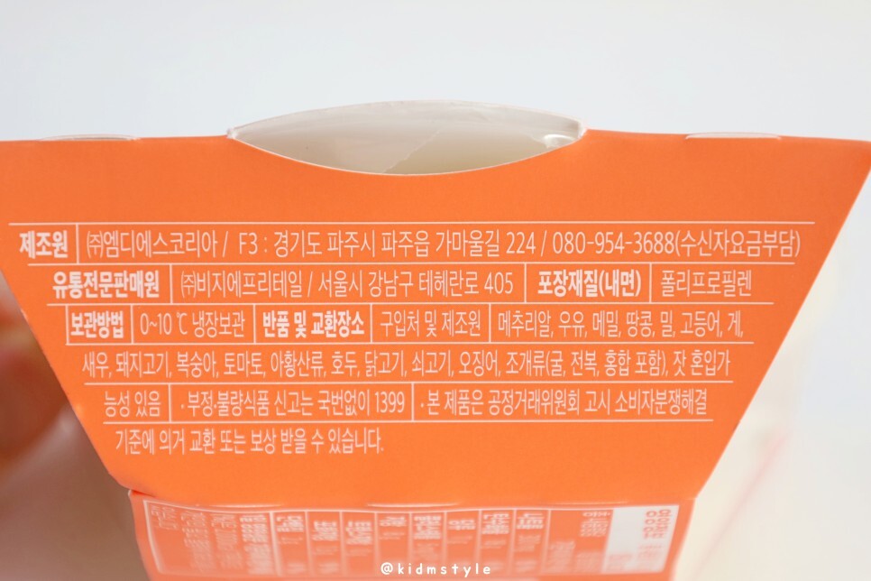 제조는 엠디에스코리아라는 곳에서 했고 유통은 CU 제품이니 비지에프리테일에서 합니다.