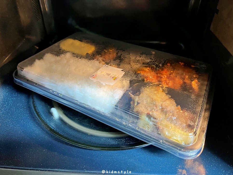 뚜껑을 덮은 채로 전자레인지에 돌려줍니다. 배고프네요.