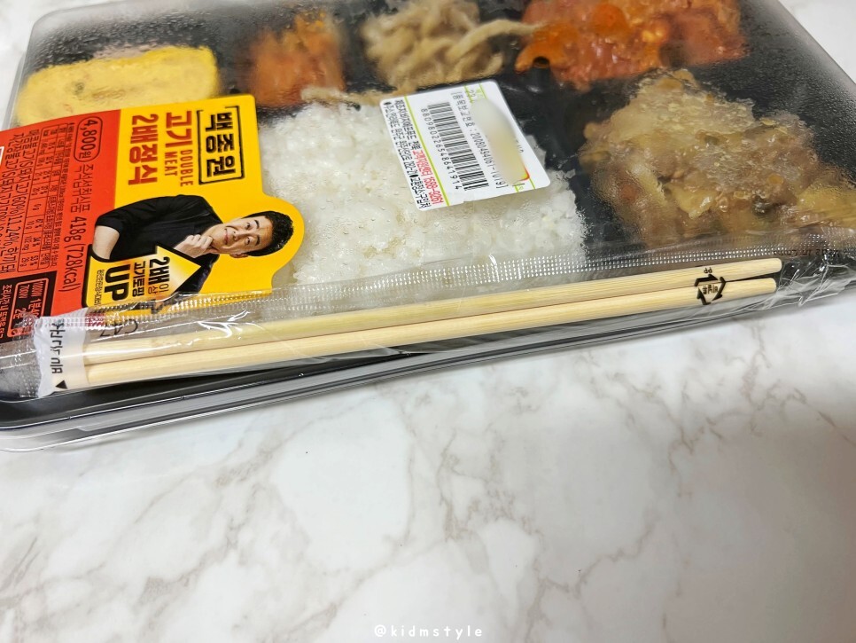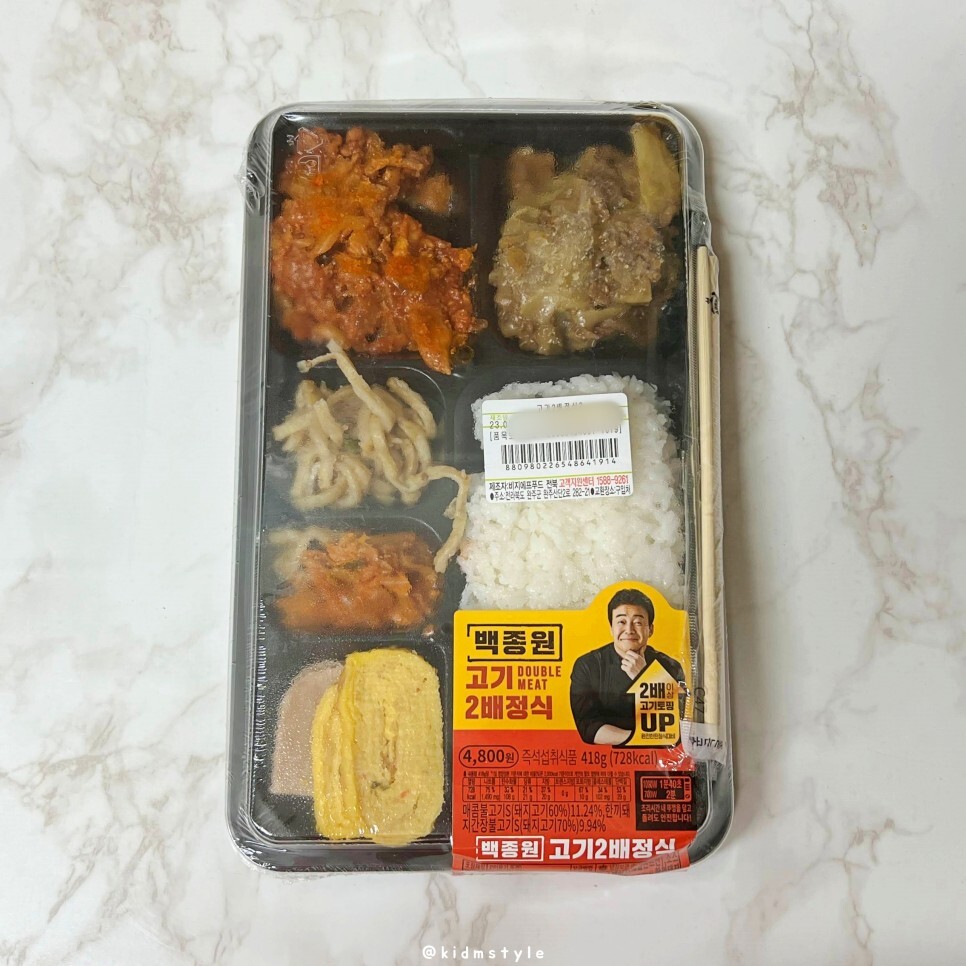 CU 편의점에서만 맛볼 수 있는 백종원 도시락입니다. 백종원 고기 2배정식이라는 제품인데요. 고기 양이 많아서 인기가 꽤 많은 도시락이기도 해요.