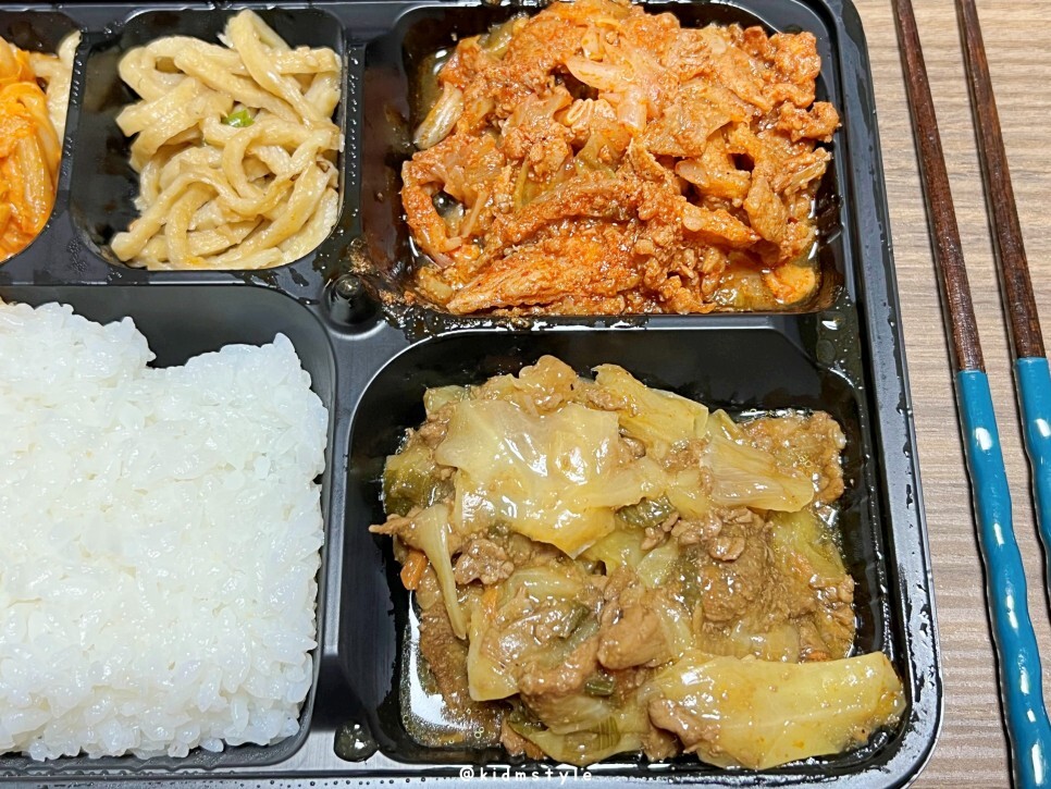 간장불고기부터 맛보니 고기가 부드럽고 양념이 맛있어요. 양배추도 잘 익었고 부드러워서 고기와 잘 어울립니다. 엄청 짜거나 싱겁지 않은 딱 적당한 양념입니다.