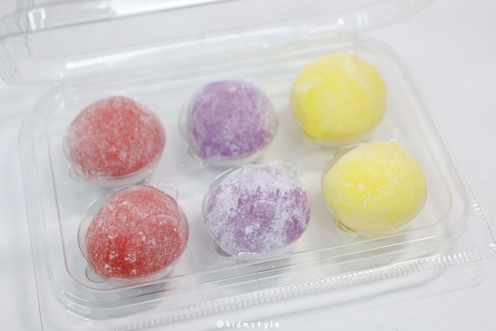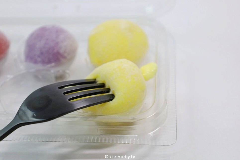 첫인상은 귀엽네요. 왼쪽부터 딸기, 고구마, 크림치즈 맛인데 하나하나 맛볼게요. 딸기향이 많이 나며 내용물이 끈적하네요. 꽤 매력적인 맛입니다. 달달해서 찰떡과는 찰떡같이 어울립니다.