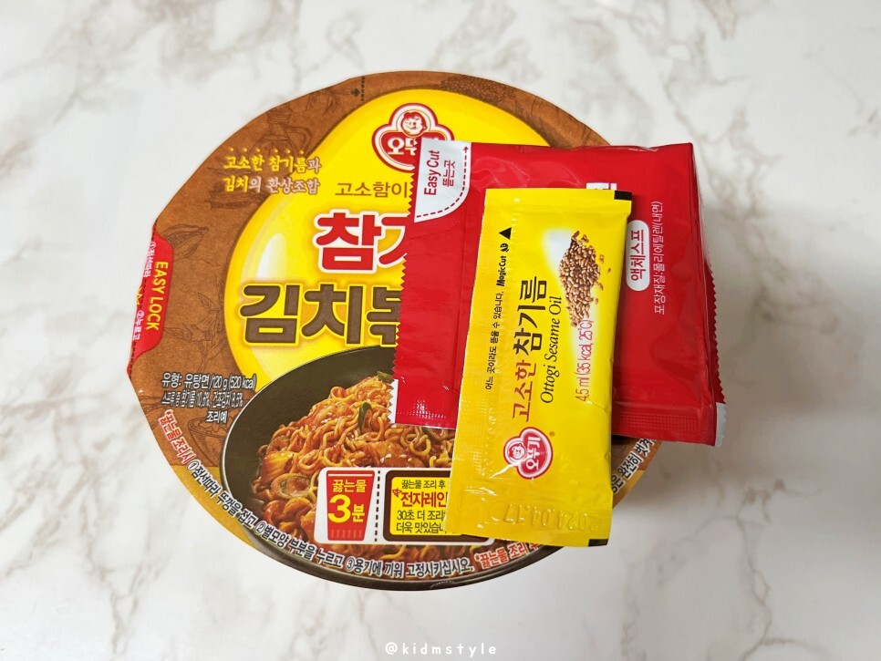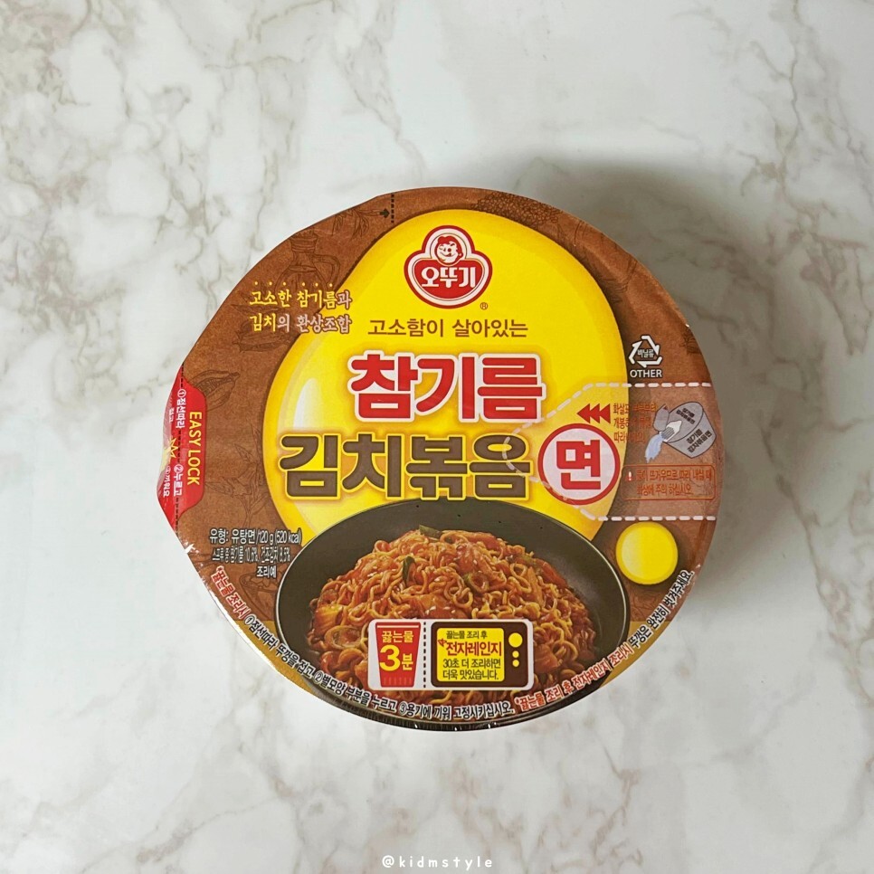 편의점에 갈 때마다 궁금하던 제품이 있는데 한번 맛보기로 했습니다. 오늘 소개할 제품은 오뚜기 참기름 김치볶음면이라는 컵라면입니다.