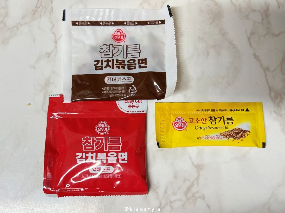 스프는 건더기스프, 액체스프, 참기름 등 총 3가지가 들어가 있습니다.