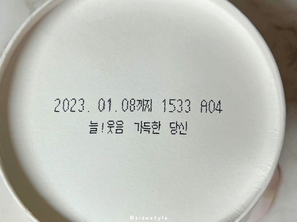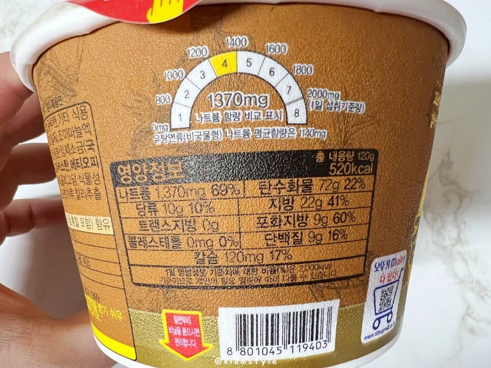 오뚜기 컵라면 하단에는 기분 좋은 문구가 한 줄 적혀있어요. 늘! 웃음 가득한 당신~ 문구를 보면서 괜히 미소 지어 봅니다.